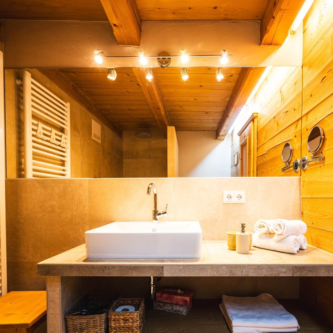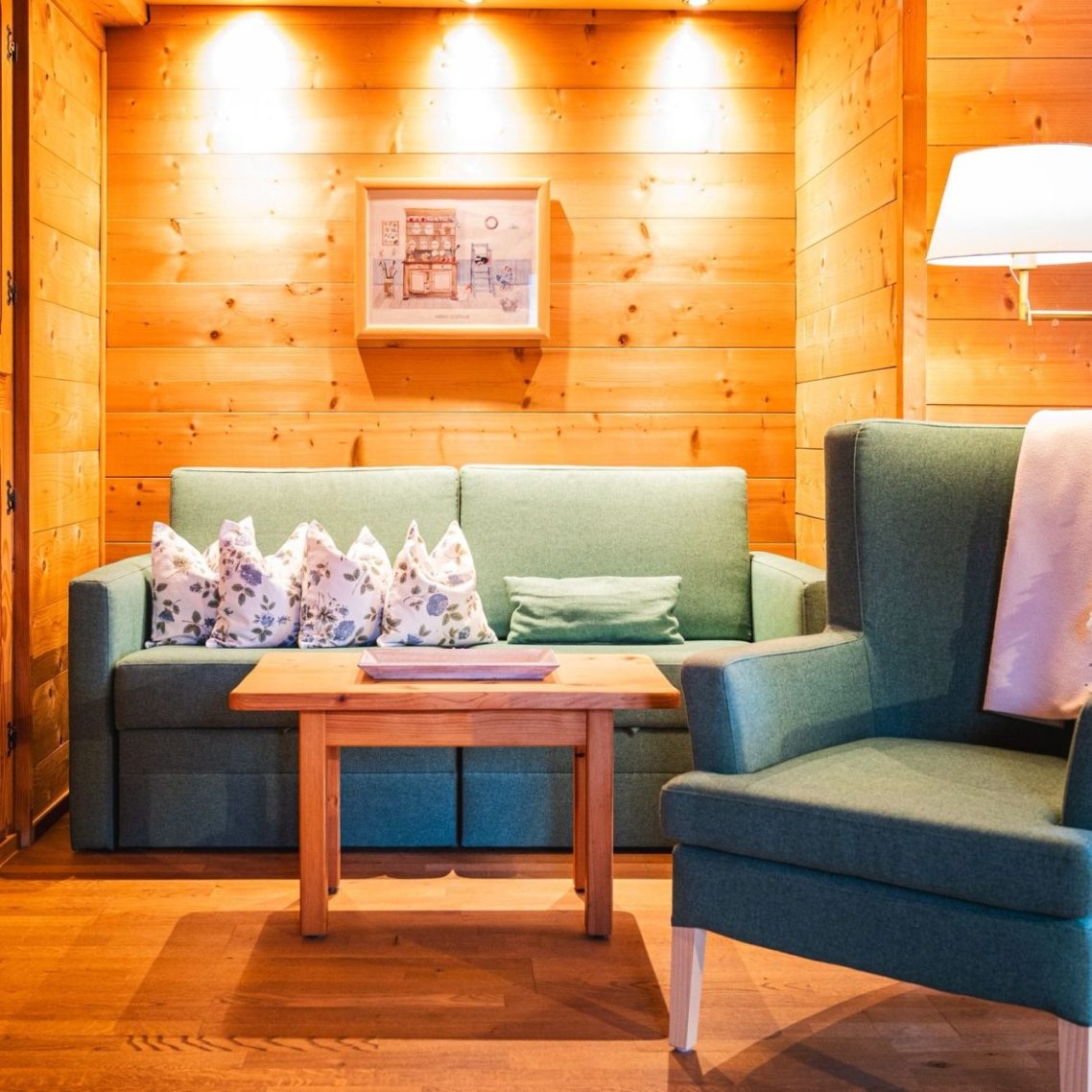 Alle unsere Wohnungen sind in biologischer Holzblockbauweise oder im Landhausstil gestaltet – viel Holz, viel Wärme, viel „Hoamat“-Gefühl.